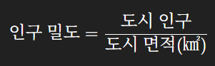 **인구 밀도(Population Density)**는 단위 면적(1㎢)당 얼마나 많은 사람이 거주하는지를 나타내는 지표입니다.
