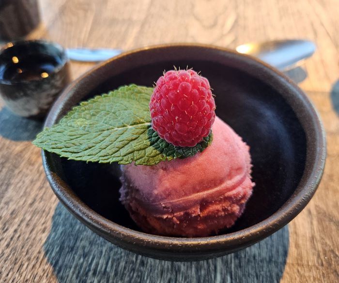 식사 후 디저트로 라즈베리 아이스크림을 주문했는데, 현재는 없어진 메뉴라고 합니다. 맛은 상큼하고 무난했으며, 특별한 인상은 남지 않았지만 깔끔한 마무리로 괜찮았습니다.