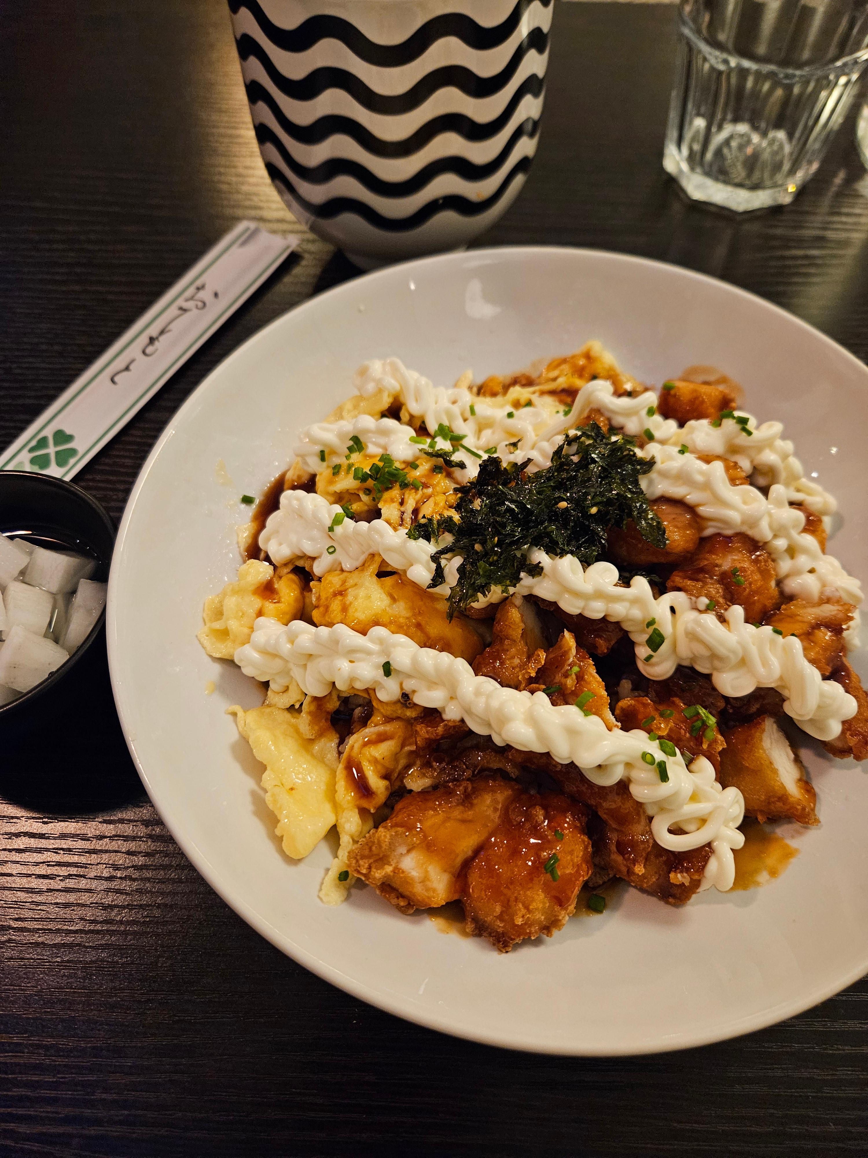 이 메뉴는 간장 베이스의 달짝지근한 소스에 마요네즈가 듬뿍 올라가 있어서 고소하고 부드러운 맛이 일품이었습니다. 먹어보니 한국에서 쉽게 접할 수 있는 컵밥 스타일의 치킨 마요와 거의 흡사한 맛이었습니다.