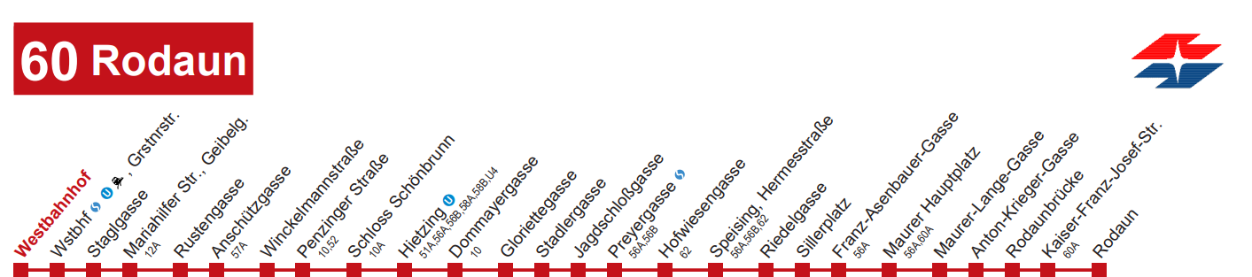 60번 트램을 타면 비엔나 서쪽 지역을 지나 쇤브룬 궁전에 도착합니다. 쇤브룬 궁전은 트램 정류장에서 도보로 이동할 수 있으며, 주변에는 정원과 동물원 등 다양한 볼거리가 있습니다.