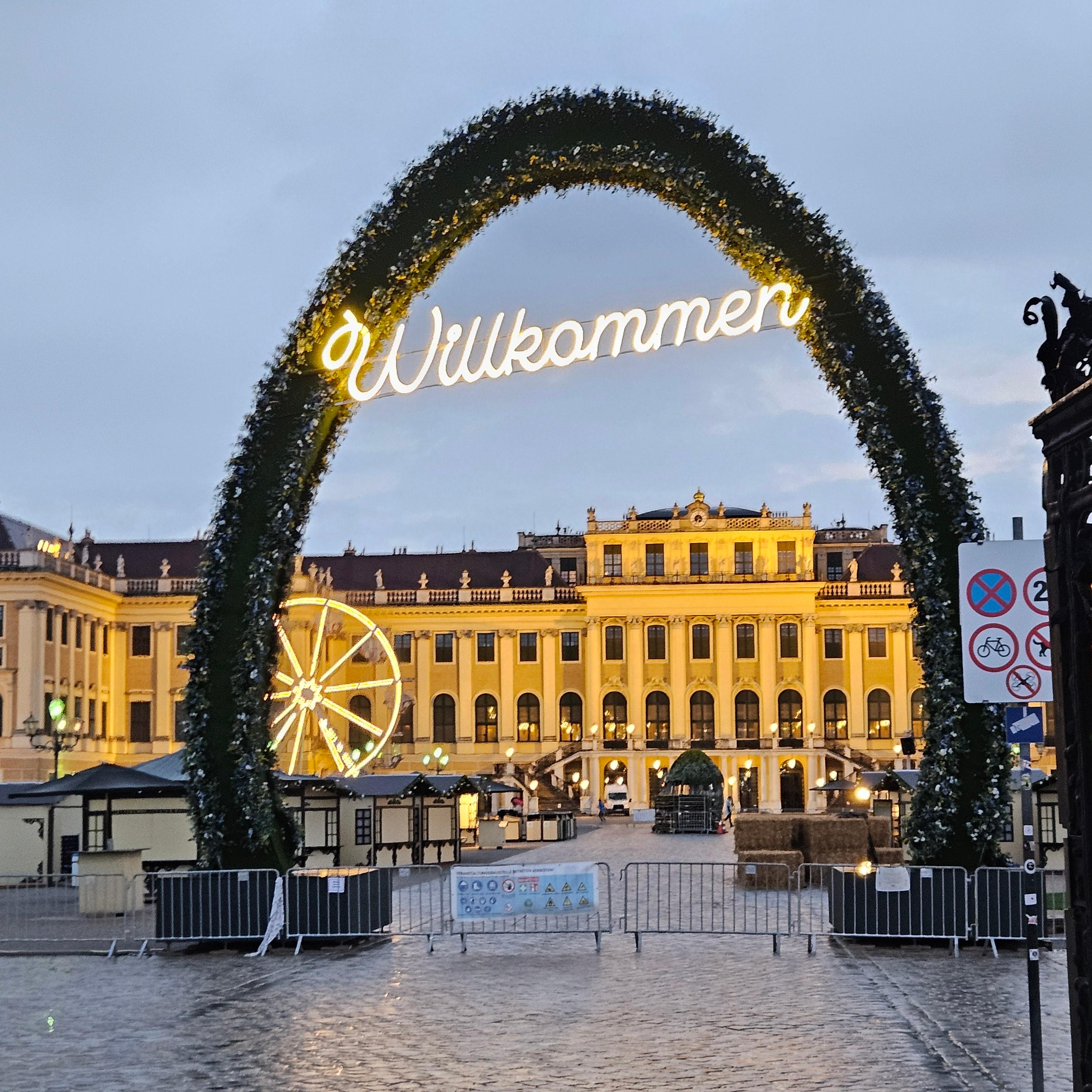 24일 저녁, 해가 저물 무렵 60번 트램을 타고 쇤브룬 궁전으로 향했습니다. 도착할 무렵 비가 내려 아쉬웠지만, 그 덕분에 궁전의 야경은 더욱 로맨틱하게 느껴졌습니다.