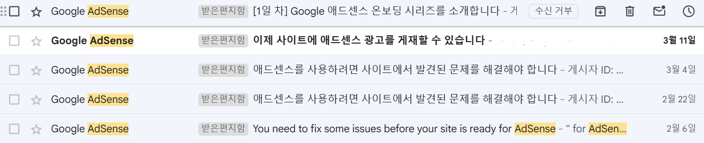 이번에는 "가치가 낮은 콘텐츠"라는 이유로 거절당했습니다. 인정할 수 없었기에, 글을 더 많이 작성하는 양치기 전략을 사용하기로 했습니다. 😤