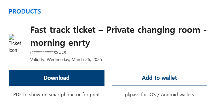 저는 모닝 패스트트랙을 미리 웹사이트에서 예약했습니다. 이 패스트트랙 티켓은 37유로였고, 이메일로 티켓을 받았어요. 패스트트랙은 입장하는 곳이 다르기 때문에 일반 티켓을 가지고 있는 사람들과 다른 입구를 통해 들어가게 됩니다. 사실 저는 Steam Entrance로 잘못 들어갔지만, Bath Entrance로 입장하시면 문제가 없어요! 이 점만 유의하시면 편리하게 입장할 수 있습니다.